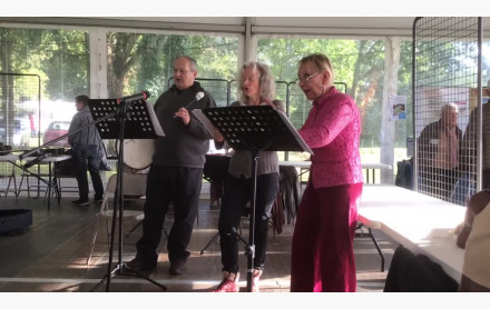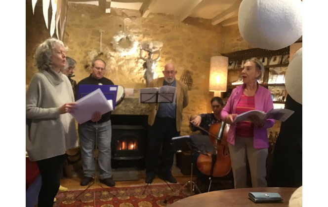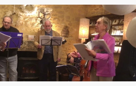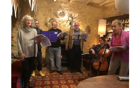 Belle après midi musicale dans une maison du moyen âge convertie en galerie d'art. L'amie de Christine recevait des musiciens. Deux couples bien sympas et notre quatuor de Musique ancienne. Les lieux agrémentés d'un petit feu de bois convenaient par...