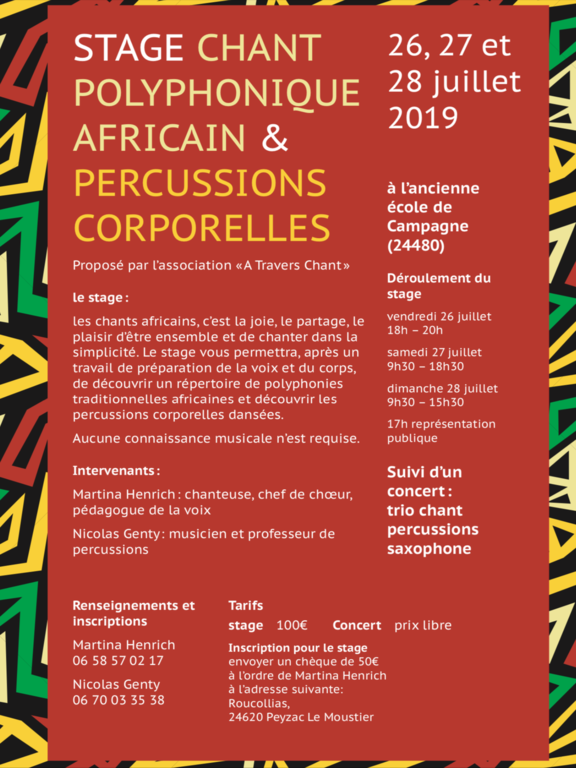Stage CHANTS POLYPHONIQUES AFRICAINS ET PERCUSSIONS